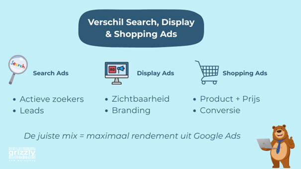 Wat is het verschil tussen Search, Display en Shopping Ads?