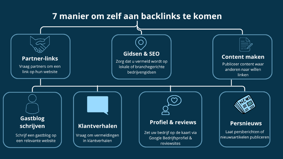 Heeft u nieuws, zoals een verhuis, een award, een nieuw product of een open deur-dag? Verstuur een persbericht naar lokale media of vakwebsites. Wordt uw nieuws opgepikt, dan levert dat vaak meteen een waardevolle backlink op.